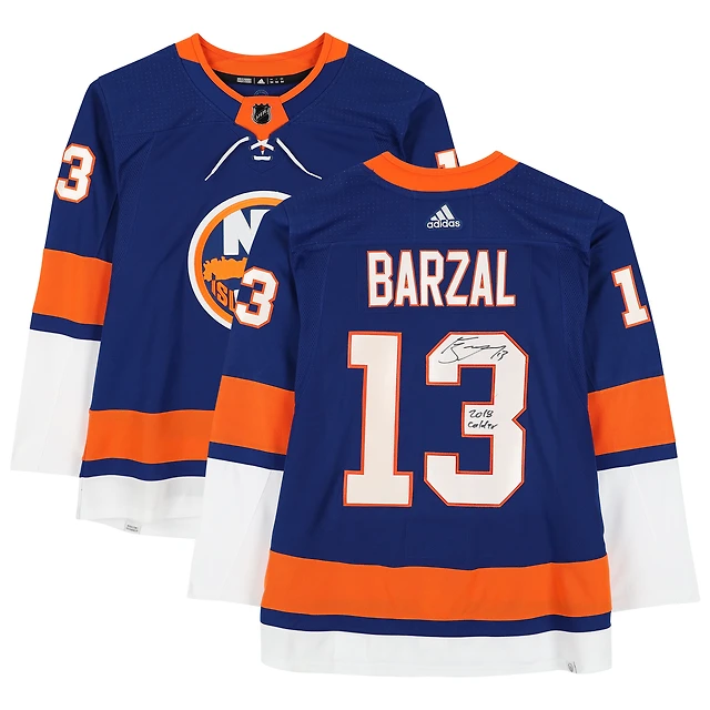 Mathew Barzal Maillot authentique Adidas bleu autographié des Islanders de New York avec inscription « 2018 Calder »