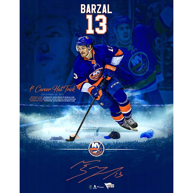 Mathew Barzal New York Islanders dédicacé 16" x 20" Première photographie de point culminant du tour du chapeau de la LNH