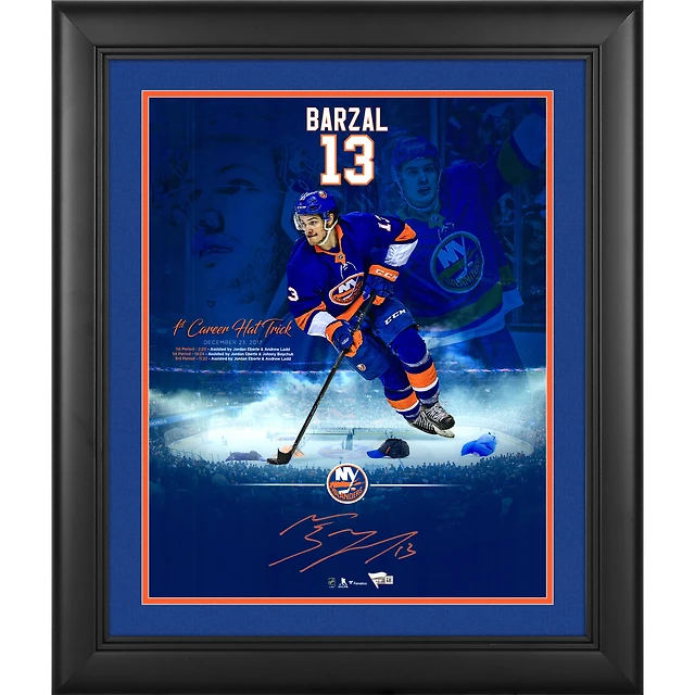 Mathew Barzal New York Islanders Framed Autographed 16" x 20" First NHL Hat Trick Highlight Photograph