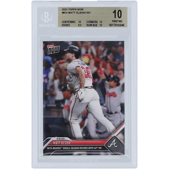 Matt Olson Atlanta Braves 2023 Topps Now Sets Braves Single Season Record with 52 HR #874 BGS Authenticated 10 Card - 10,10,9.5,10 Subgrades
