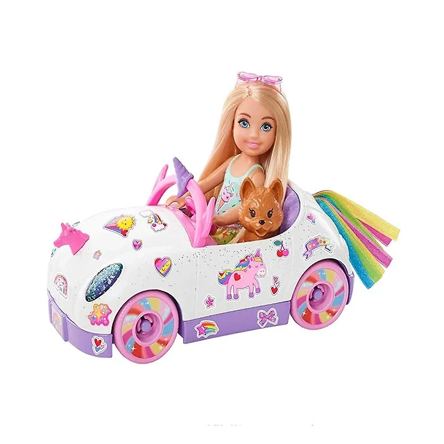 Mattel Barbie Club Chelsea Doll With Rainbow Unicorn Open Car Toy