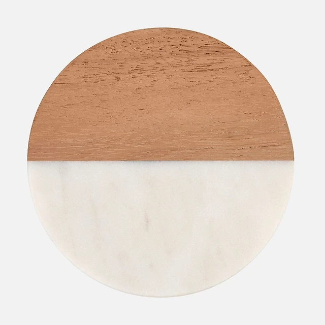 Maxwell & Williams Sous-verre rond en marbre et acacia - Blanc et bois
