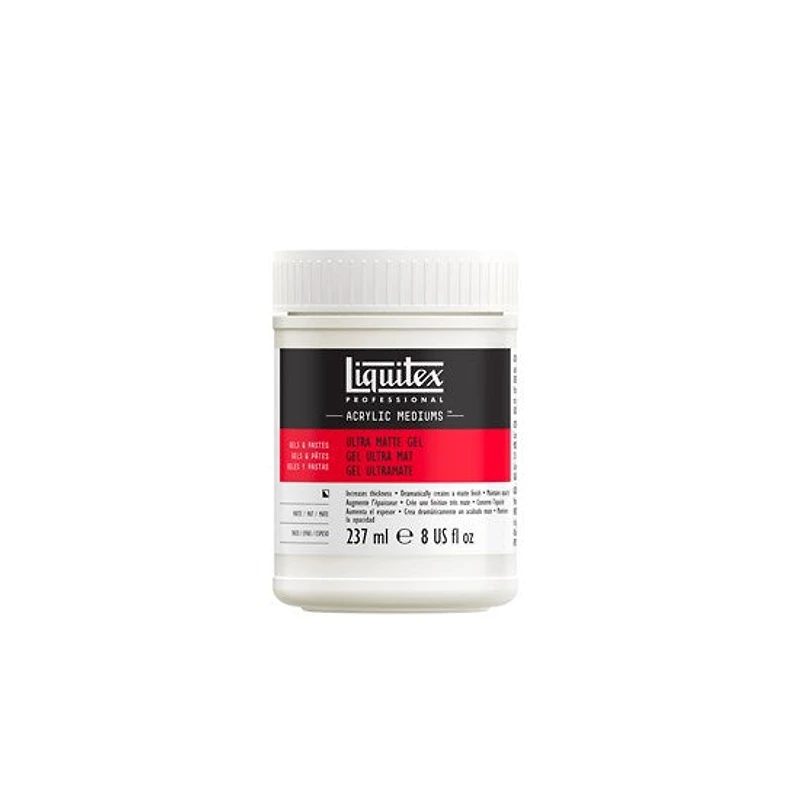 Liquitex ultra-matte medium allows for thinning the acrylic paint without modifying either its opacity or its shade. Liquitex ultra-matte medium allows for the doubling of the acrylic paint volume and produces results which would be impossible to obtain with other mediums. Of less viscous consistency than the gel, this medium allows working impastos and dries into a lightly satiny matte finish.Supports : suitable for all supports. Use : As a binder to make economical paint from powdered pigments.Important information :Do not dilute by more than 25% with water.Added to paint at a level in excess of 50%, it can lighten colours. Do not mix with oil.