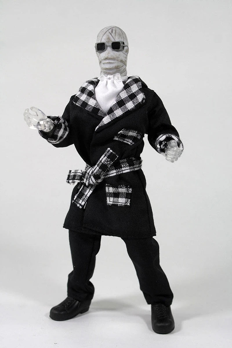 The Mego Mad Monster laboratory is at it once again! Mego is super excited to present The World's Greatest Mego Monsters Invisible Man - officially licensed from Universal Studios! The Invisible Man will be frightening his way into the Megoverse for the first time ever with this fan favorite version! "An invisible man can rule the world. Nobody will see him come, nobody will see him go. He can hear every secret!" What unseeable horrors will the Invisible Man unleash upon us?? Can he be stopped?? You decide!! Mego is taking its fans to unseen depths of horror with the all-new 8" Invisible Man action figure! The Invisible Man comes with screen accurate detail and sculpting as seen in the 1933 film! "He's here, he's there, he's everywhere - catch him if you can!"