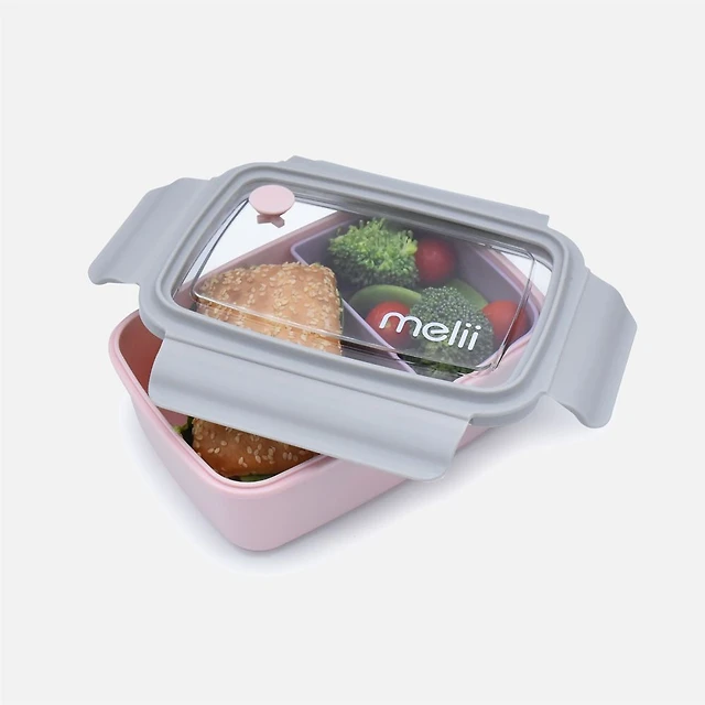 Melii Boîte à bento avec séparateur amovible, 2 compartiments - Rose/violet/gris