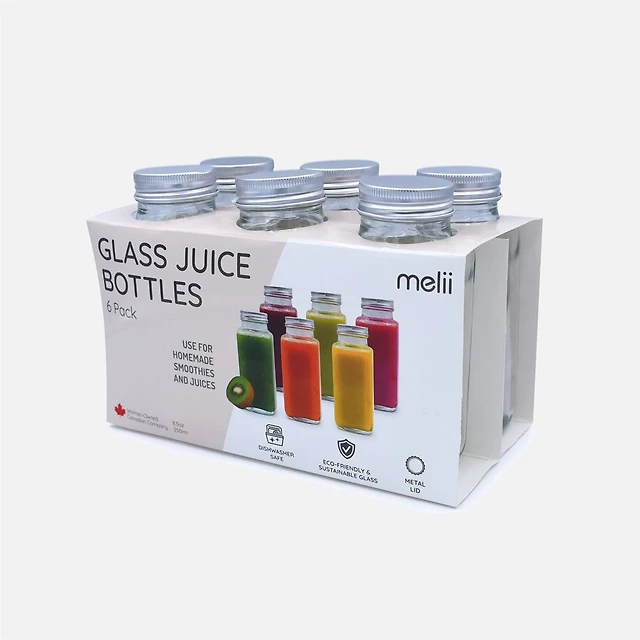 Melii Bouteille à jus en verre avec couvercle en métal, ensemble de 6