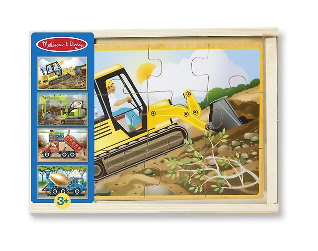 Melissa & Doug Construction Vehicles 4-in-1 Wooden Jigsaw Puzzles - 48 pieces