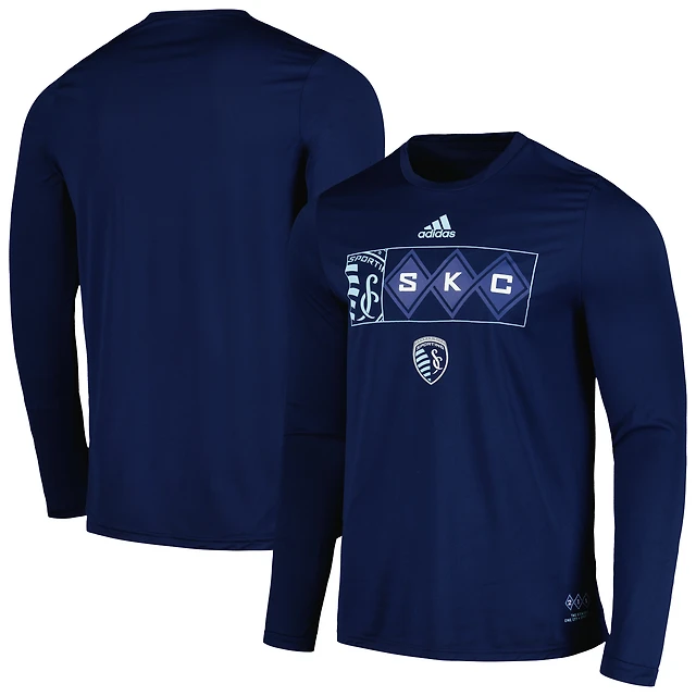 Men's adidas Navy Sporting Kansas City 2024 Jersey Hook AEROREADY Long Sleeve T-Shirt