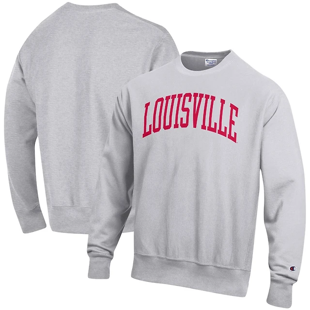 Men's Champion Heathered Gray Louisville Cardinals Arch Reverse Weave Pullover Sweatshirt