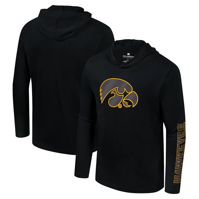 Men's Colosseum Black Iowa Hawkeyes Color Pop Active Blend 2-Hit Long Sleeve Hooded T-Shirt