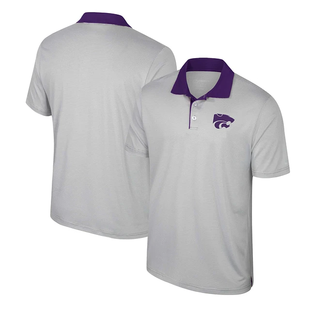Men's Colosseum Gray Kansas State Wildcats Tuck Striped Polo