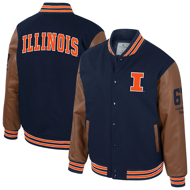 Men's Colosseum Navy Illinois Fighting Illini Letterman Full-Snap Varsity Jacket