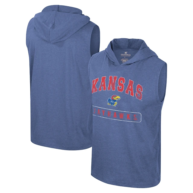 Men's Colosseum Royal Kansas Jayhawks Varsity Sleeveless Hoodie Tank Top