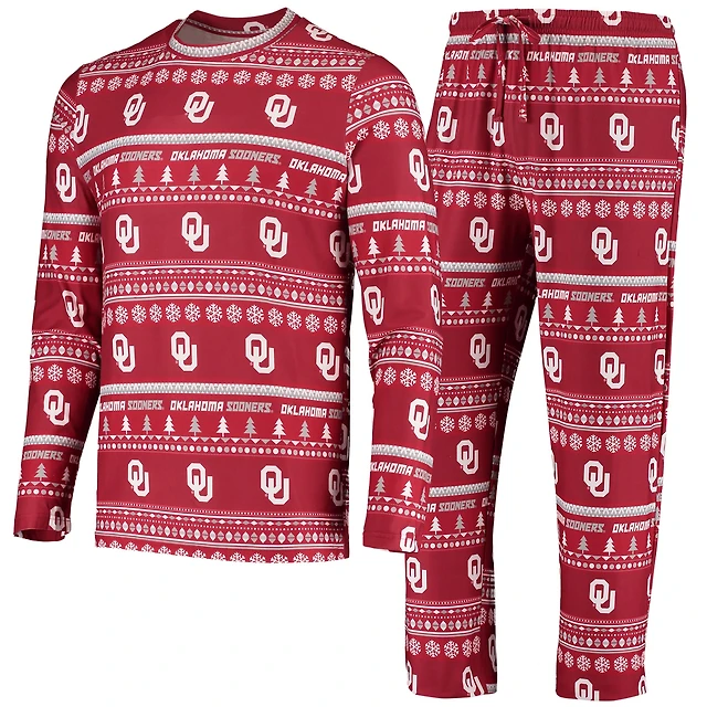 Men's Concepts Sport Crimson Oklahoma Sooners Ugly Sweater Knit Long Sleeve Top and Pant Set