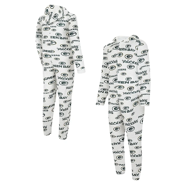 Men's Concepts Sport White Green Bay Packers Allover Print Docket Union Full-Zip Hooded Pajama Suit