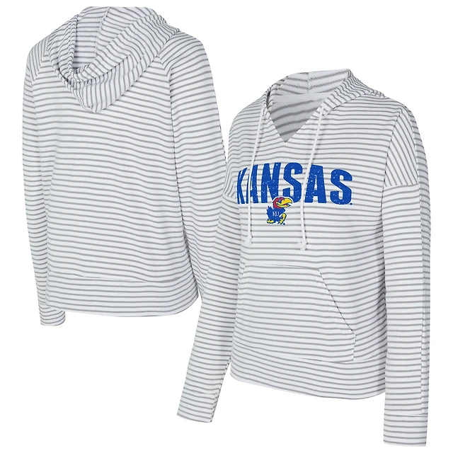 Men's Concepts Sport White/Gray Kansas Jayhawks French Terry Striped V-Neck Pullover Hoodie
