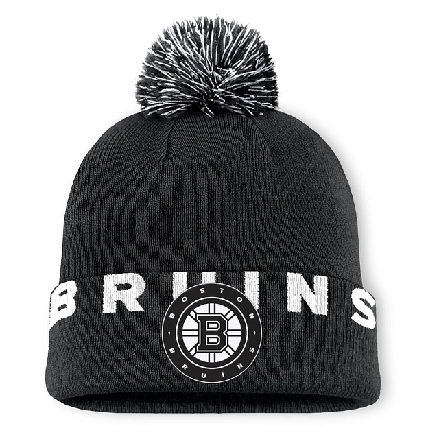 Men's Fanatics Black Boston Bruins Fundamental High Stick Cuffed Knit Hat with Pom