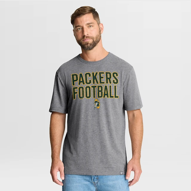 Men's Fanatics Heather Gray Green Bay Packers First Down Tribute Tri-Blend T-Shirt