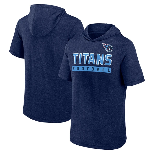 Men's Fanatics Heather Navy Tennessee Titans Push Short Sleeve Pullover Hoodie