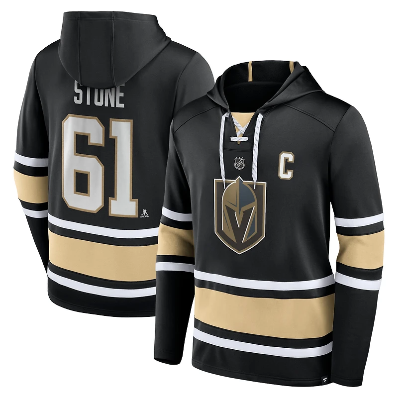 Men's Fanatics Mark Stone Black Vegas Golden Knights Name & Number Lace-Up Pullover Hoodie