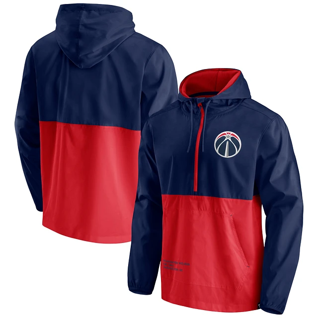 Men's Fanatics Navy/Red Washington Wizards Anorak Block Party Windbreaker Half-Zip Hoodie Jacket