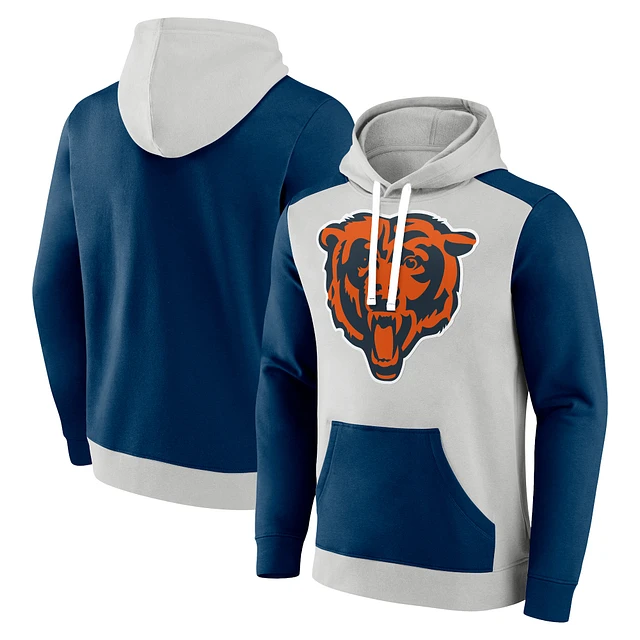 Men's Fanatics Silver/Navy Chicago Bears Big & Tall Team Fleece Pullover Hoodie