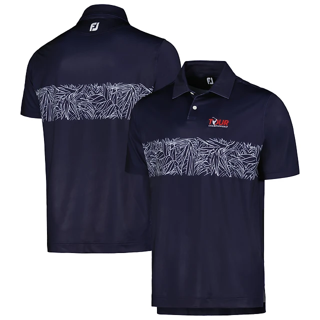 Men's FootJoy Navy TOUR Championship Tropical Chestband Lisle ProDry Polo