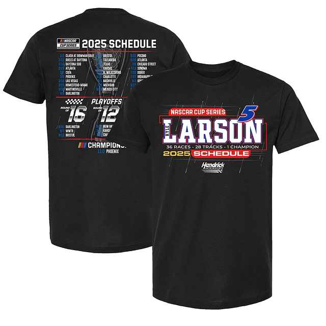 Men's Hendrick Motorsports Team Collection Black Kyle Larson 2025 NASCAR Cup Series Schedule T-Shirt