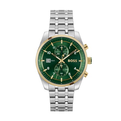 Men's Hugo Boss Skytraveller Two-Tone IP Chronograph Watch with Green Dial (Model: 1514195)