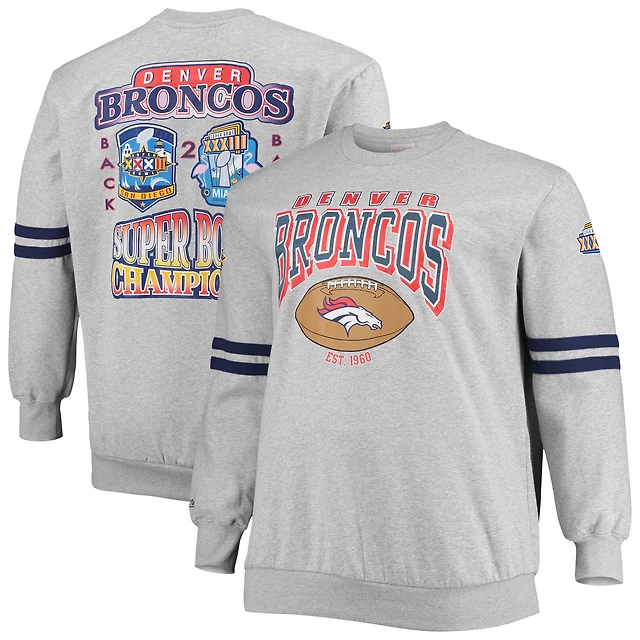 Men's Mitchell & Ness Heathered Gray Denver Broncos Big Tall Allover Print Pullover Sweatshirt