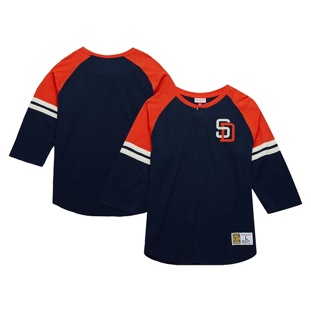 Men's Mitchell & Ness Navy San Diego Padres Cooperstown Collection Legendary Raglan Slub Henley 3/4-Sleeve T-Shirt