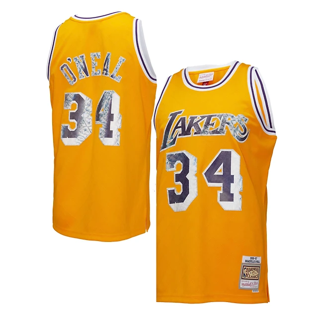 Men's Mitchell & Ness Shaquille O'Neal Gold Los Angeles Lakers 1996/97 Hardwood Classics 75th Anniversary Diamond Swingman - Jersey