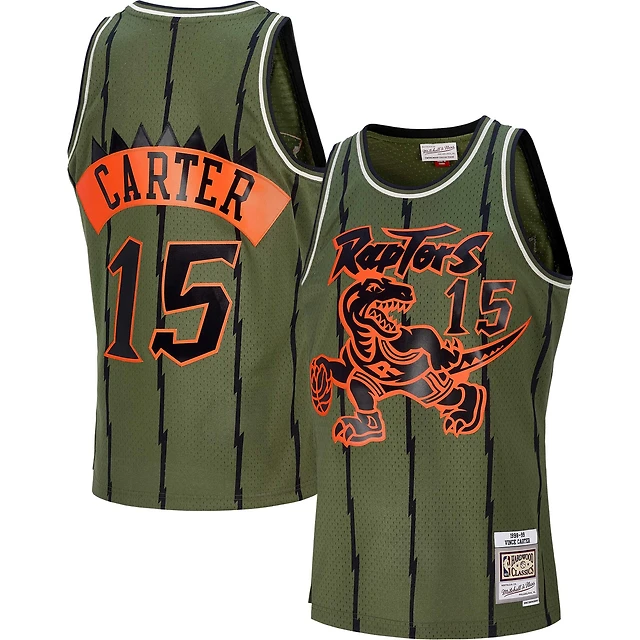 Men's Mitchell & Ness Vince Carter Olive Toronto Raptors 1998/99 Hardwood Classics Flight Edition Swingman Jersey