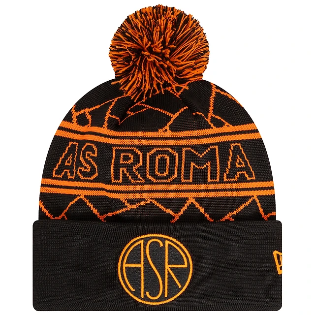 Men's New Era Black AS Roma Sport Cuffed Knit Hat with Pom