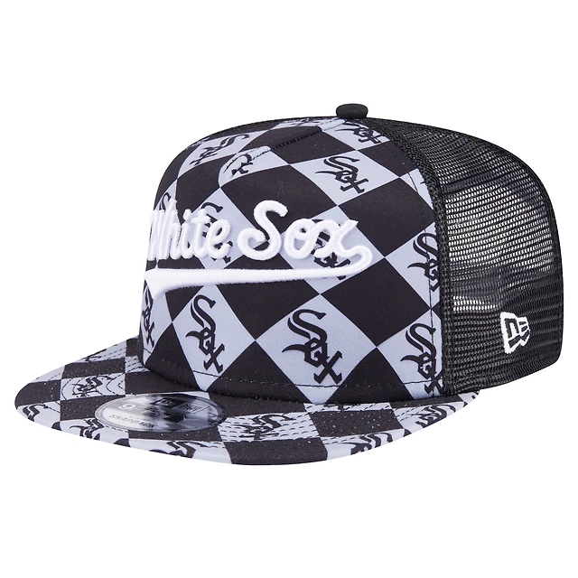 Men's New Era Black Chicago White Sox Seeing Diamonds A-Frame Trucker 9FIFTY Snapback Hat