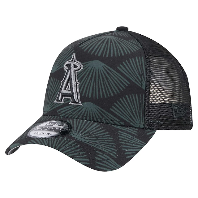 Men's New Era Black Los Angeles Angels 9FORTY A-Frame Trucker Adjustable Hat