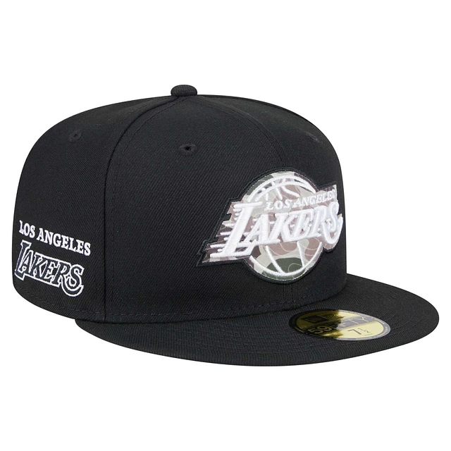 Men's New Era Black Los Angeles Lakers Camo Print UV 59FIFTY Fitted Hat