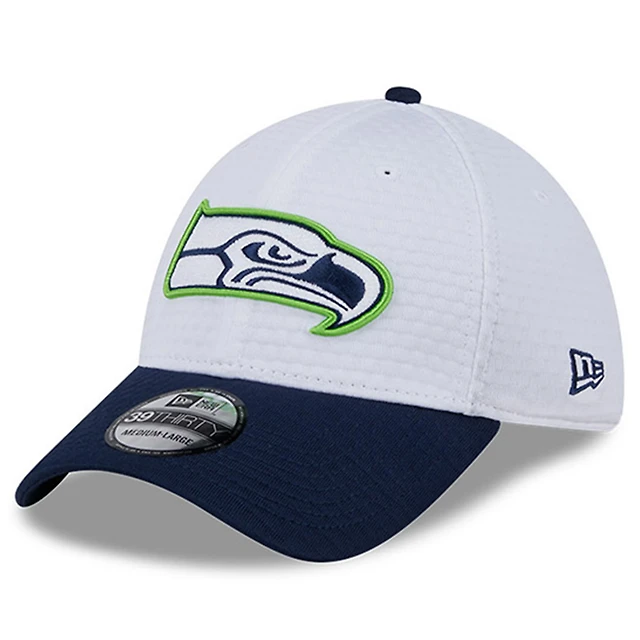 Men's New Era White/College Navy Seattle Seahawks 2024 NFL Training Camp 39THIRTY Flex Hat