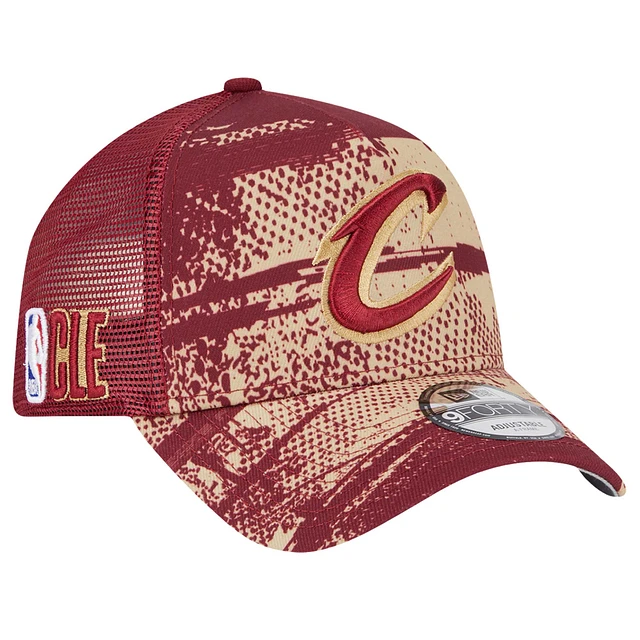 Men's New Era Wine/Gold Cleveland Cavaliers Tip Off A-Frame Trucker 9FORTY Adjustable Hat