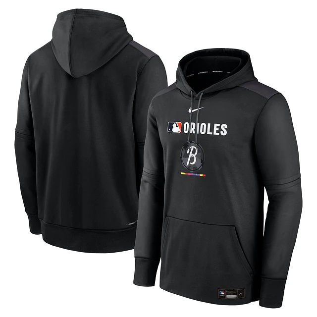 Men's Nike Black Baltimore Orioles Authentic Collection City Connect Therma Pullover Hoodie