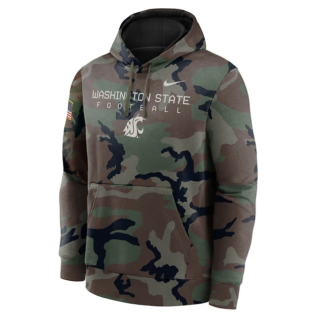 Men's Nike Camo Washington State Cougars 2024 Military Appreciation Club Fleece Pullover Hoodie