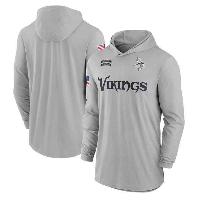 Men's Nike Gray Minnesota Vikings 2024 Salute to Service Lightweight Performance Long Sleeve Hooded T-Shirt