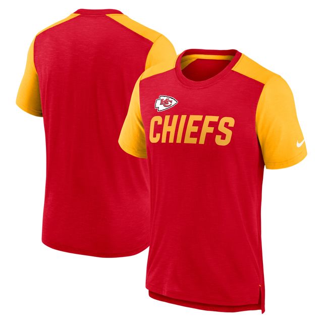 Men's Nike Heathered Red/Heathered Gold Kansas City Chiefs Color Block Team Name T-Shirt