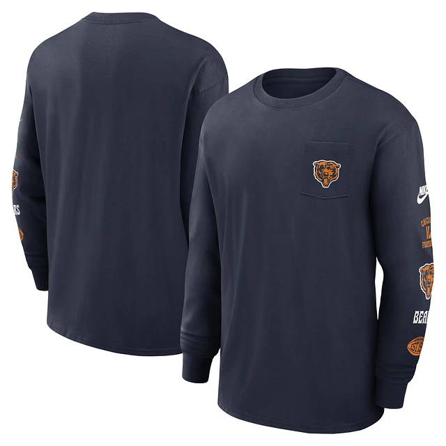 Men's Nike Navy Chicago Bears Rewind Heavy Max 90 Pocket Long Sleeve T-Shirt