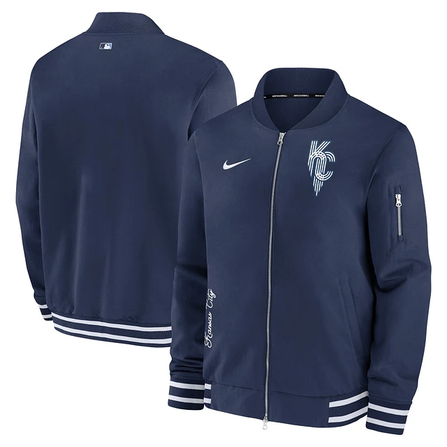 Men's Nike Navy Kansas City Royals Authentic Collection Game Time Bomber Full-Zip Jacket