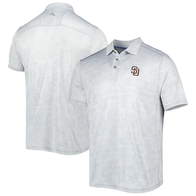 Men's Tommy Bahama Gray San Diego Padres IslandZone Pineapple Palm Coast Polo