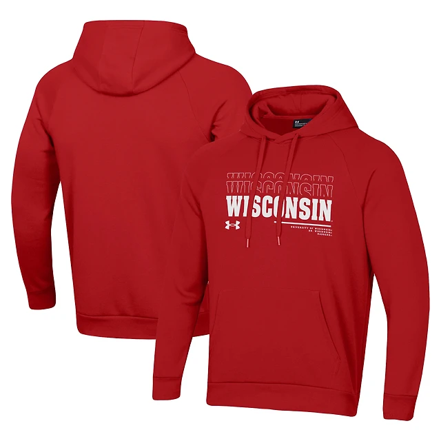 Men's Under Armour Red Wisconsin Badgers 2024 Sideline Wordmark Rival Pullover Hoodie