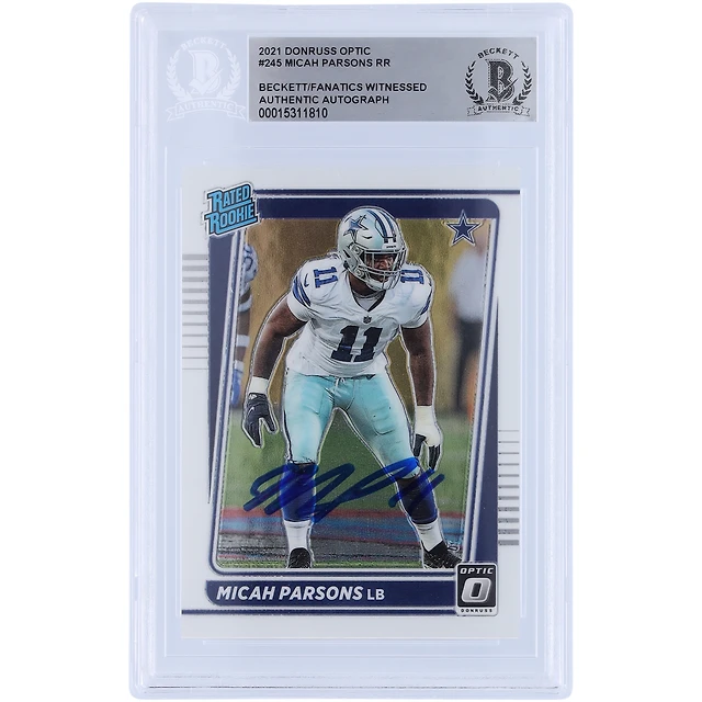 Micah Parsons Dallas Cowboys Carte de recrue authentifiée 2021 Panini Donruss Optic Rated Rookie #245 Beckett Fanatics Witnessed