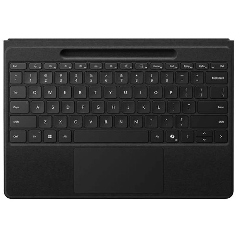 Pair it with your 13” Microsoft Surface Pro (sold separately) for a full laptop experience, expanding your usage options Designed to be used by attaching with your Surface Pro device or as a standalone keyboard Customizable haptic touchpad allows for effortless creation with intuitive gestures and precise control Copilot key enhances productivity and simplifies daily tasks Microphone mute key allows you to quickly mute or unmute your microphone Snipping key gives instant access to the snipping tool for capturing screenshots Surface Slim Pen (sold separately) can be wirelessly charged and safely stored in the keyboard's storage tray Bluetooth Low Energy supports up to 8ft. (10m) open-air connectivity Backward compatible and suitable for Surface Pro 8 and Surface Pro 9 running Windows 11 Offers up to 41 hours of continuous typing when detached (depending on usage)