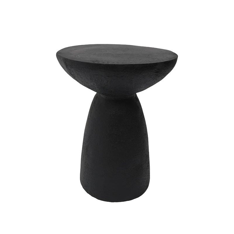 Sculptural hourglass form, in a matte finish. This MGO side table adds a striking, contemporary edge to any interior or outdoor setting. The stone-like texture grounds the piece with an organic depth that pairs effortlessly with both light and dark